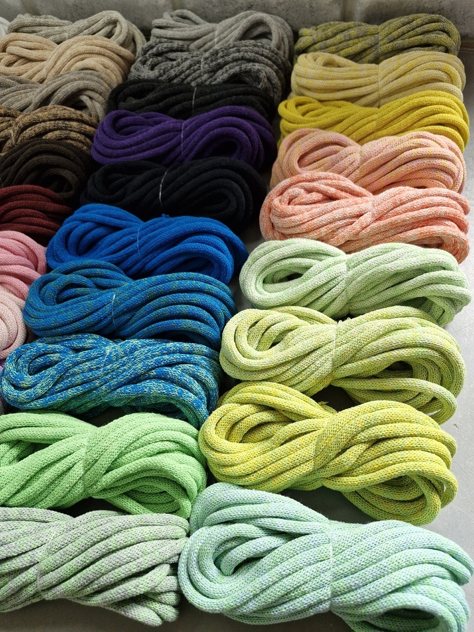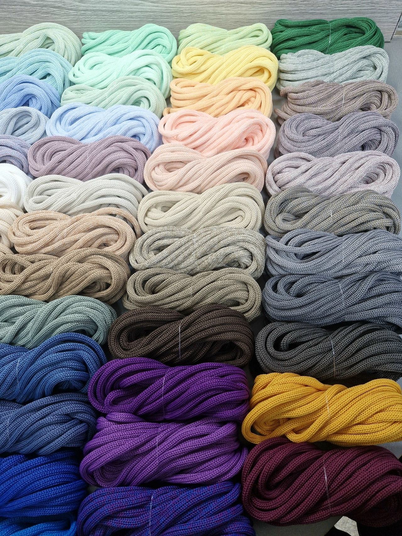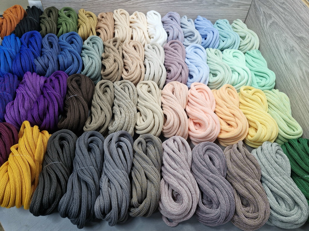 Компания предоставляет богатую палитру цветов , а также шнуры градиент - с переходом из одного цвета в другой, и меланж - смешение цветов по желанию клиентов. Технологи помогут рассчитать необходимый метраж для вашего изделия, разработают всевозможные варианты перехода цветов. По вашему запросу мы присылаем палитру образцов бесплатно.