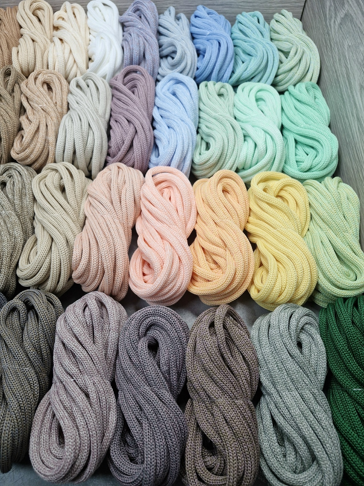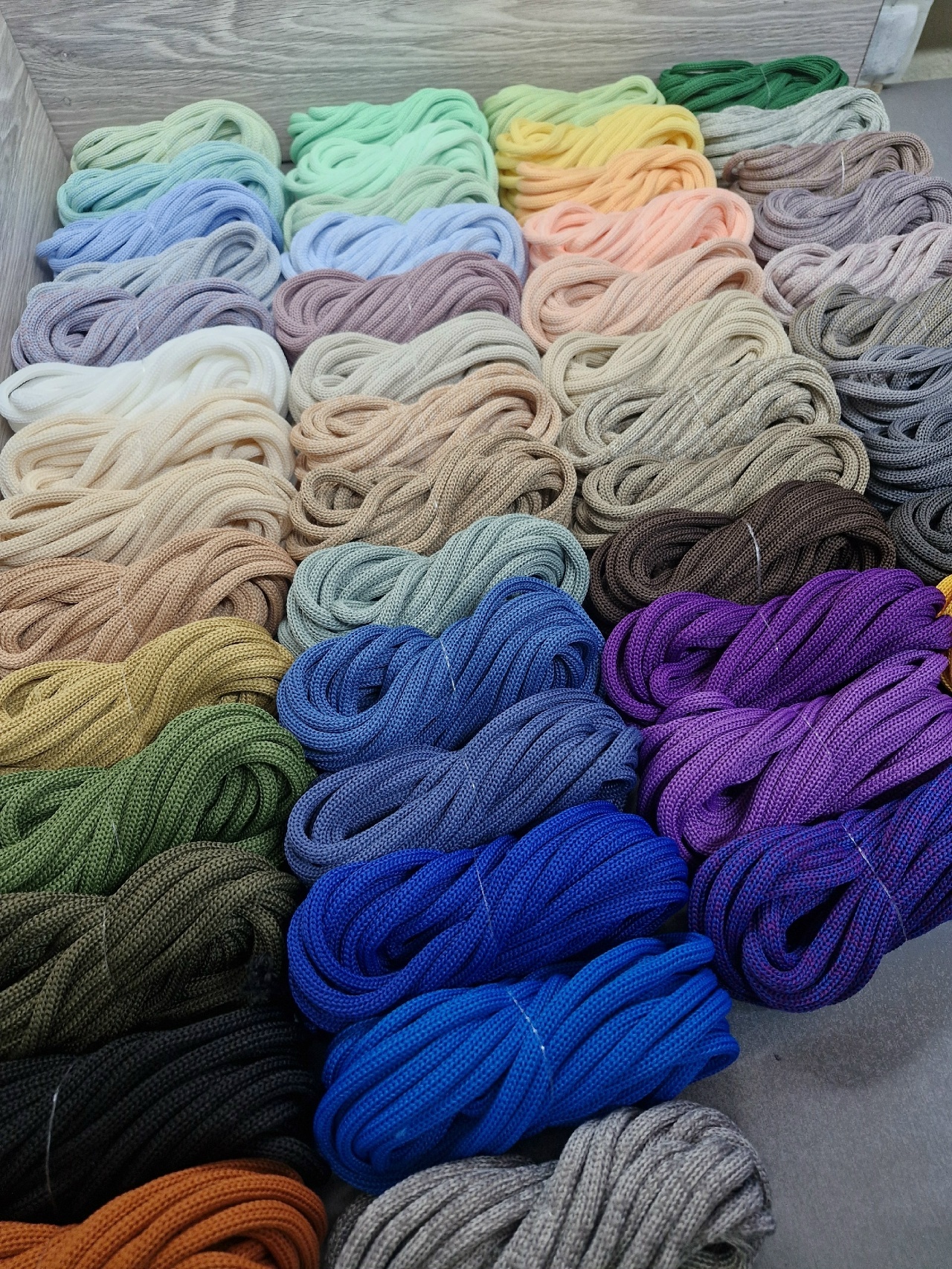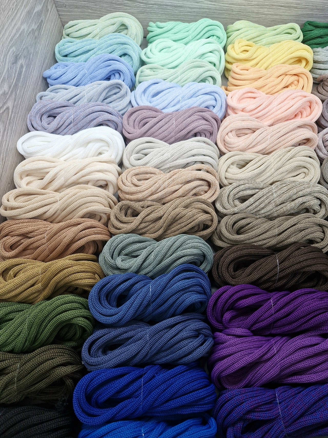 Компания предоставляет богатую палитру цветов , а также шнуры градиент - с переходом из одного цвета в другой, и меланж - смешение цветов по желанию клиентов. Технологи помогут рассчитать необходимый метраж для вашего изделия, разработают всевозможные варианты перехода цветов. По вашему запросу мы присылаем палитру образцов бесплатно.