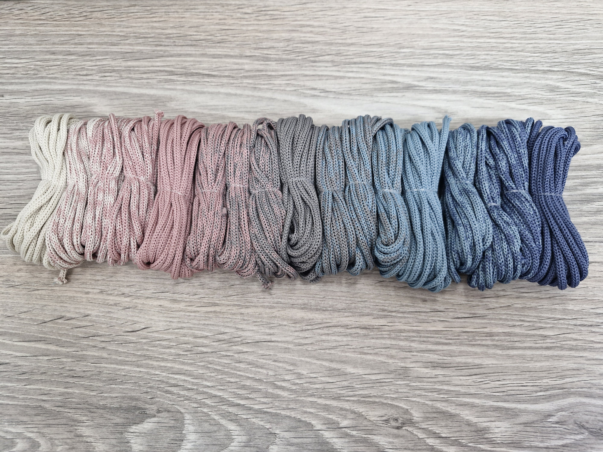 Шнур Градиент 3мм без сердечника айвори - пыльная роза(II) - серый- дымчатый — джинс