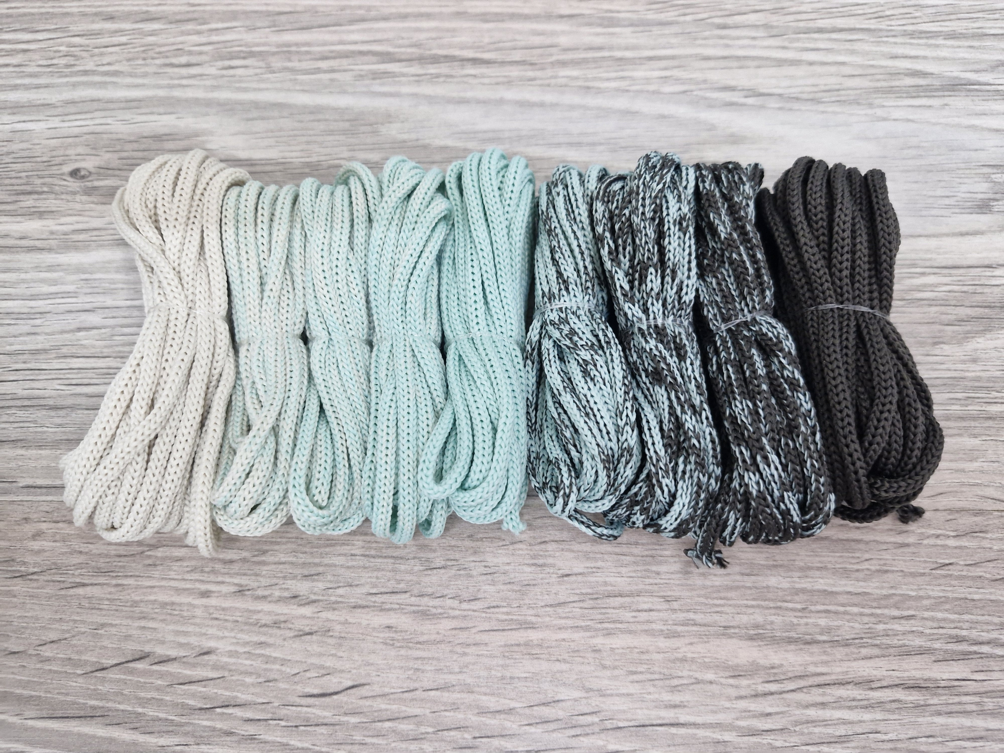 Шнур Градиент 3мм без сердечника айвори — мята — дымчатый- асфальт