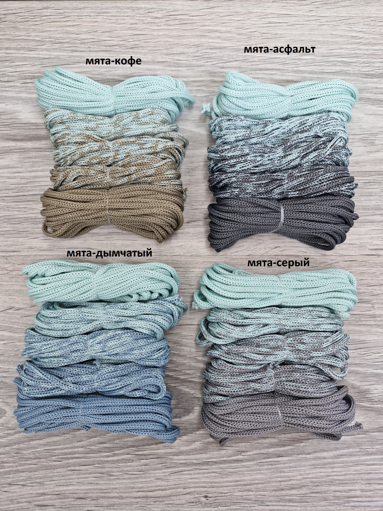 Шнур Градиент 3мм без сердечника мята -серый