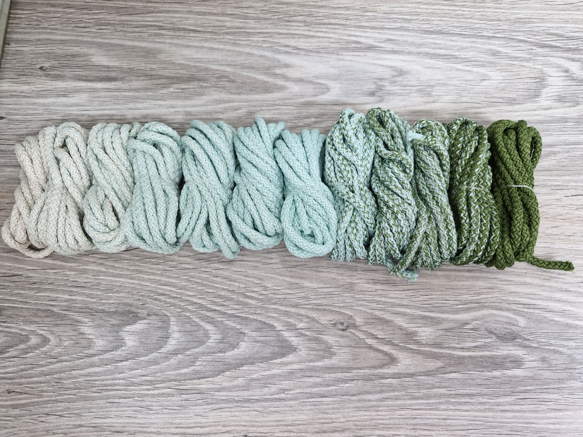 Шнур полиэфирный 5мм с сердечником ГРАДИЕНТ Айвори- Мята-Олива