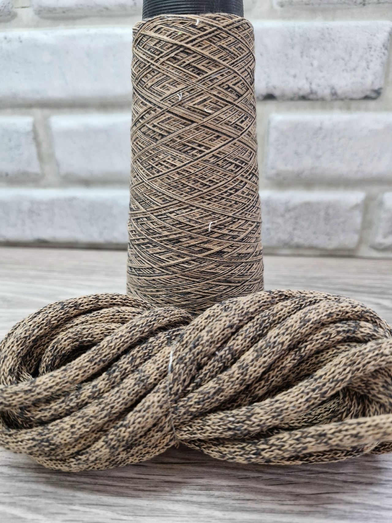 Шнур Хлопковый 7ММ с сердечником карамель+темно-серый 2-1