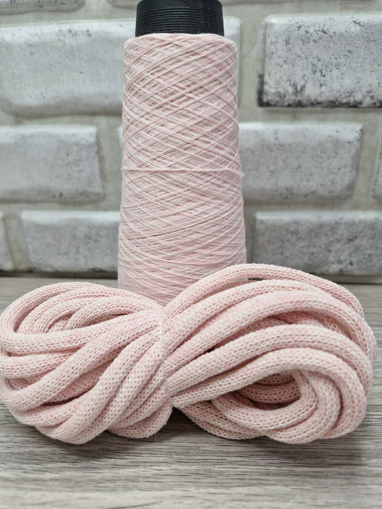 Шнур Хлопковый 7ММ с сердечником молоко+розовый 2-1