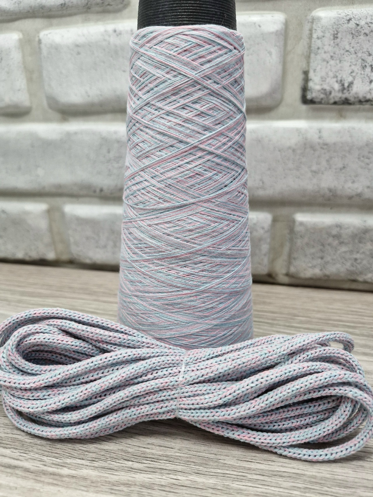 шнур хлопковый 4мм без сердечника ледяной+розовый (2-1)