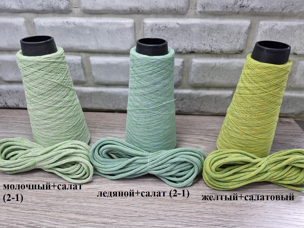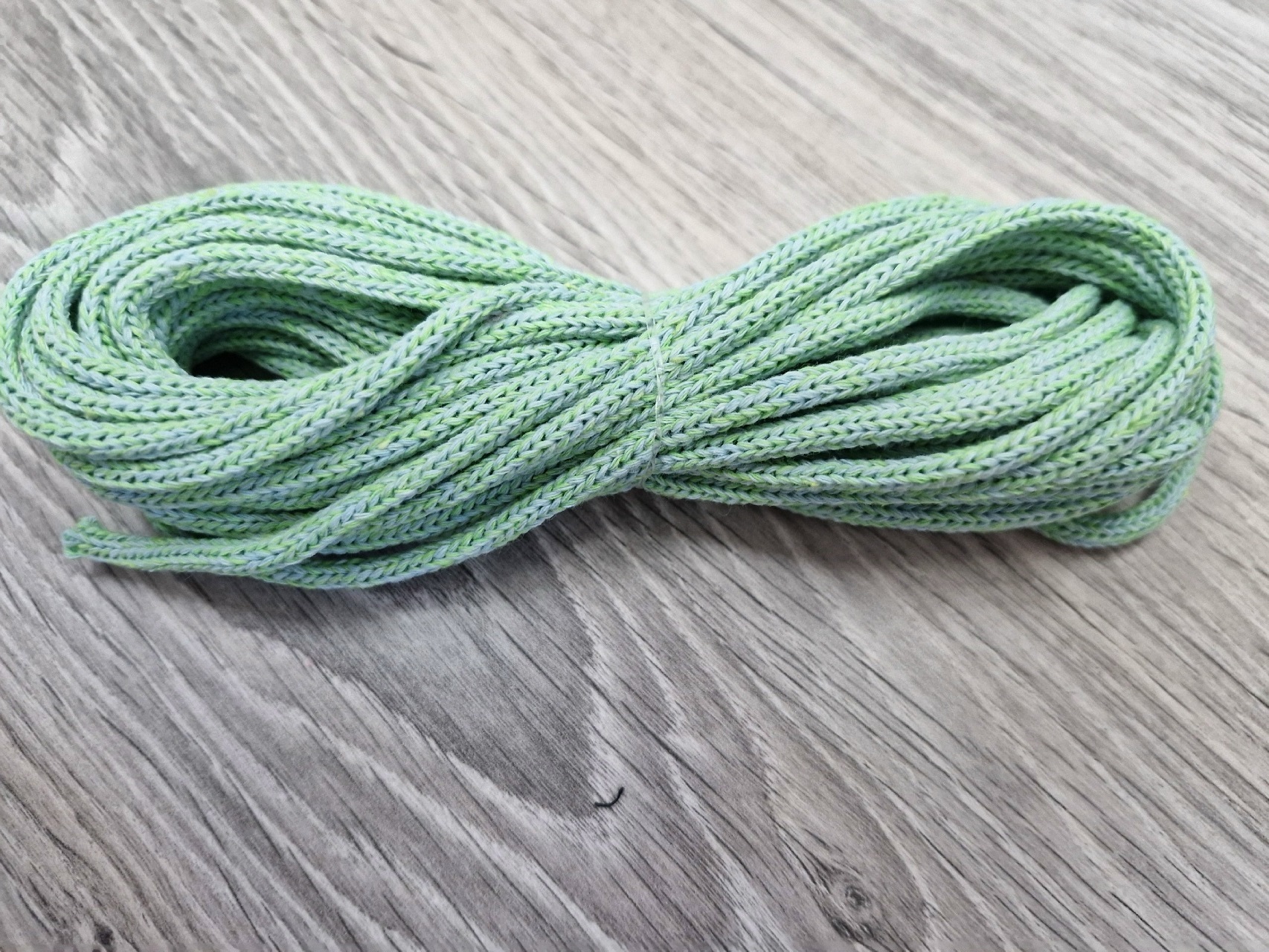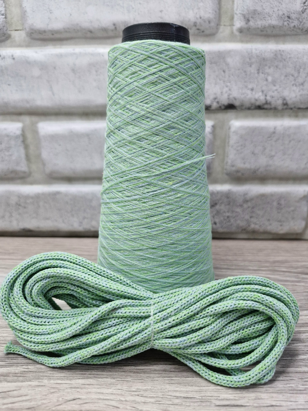 шнур хлопковый 4мм без сердечника ледяной+салат (2-1)