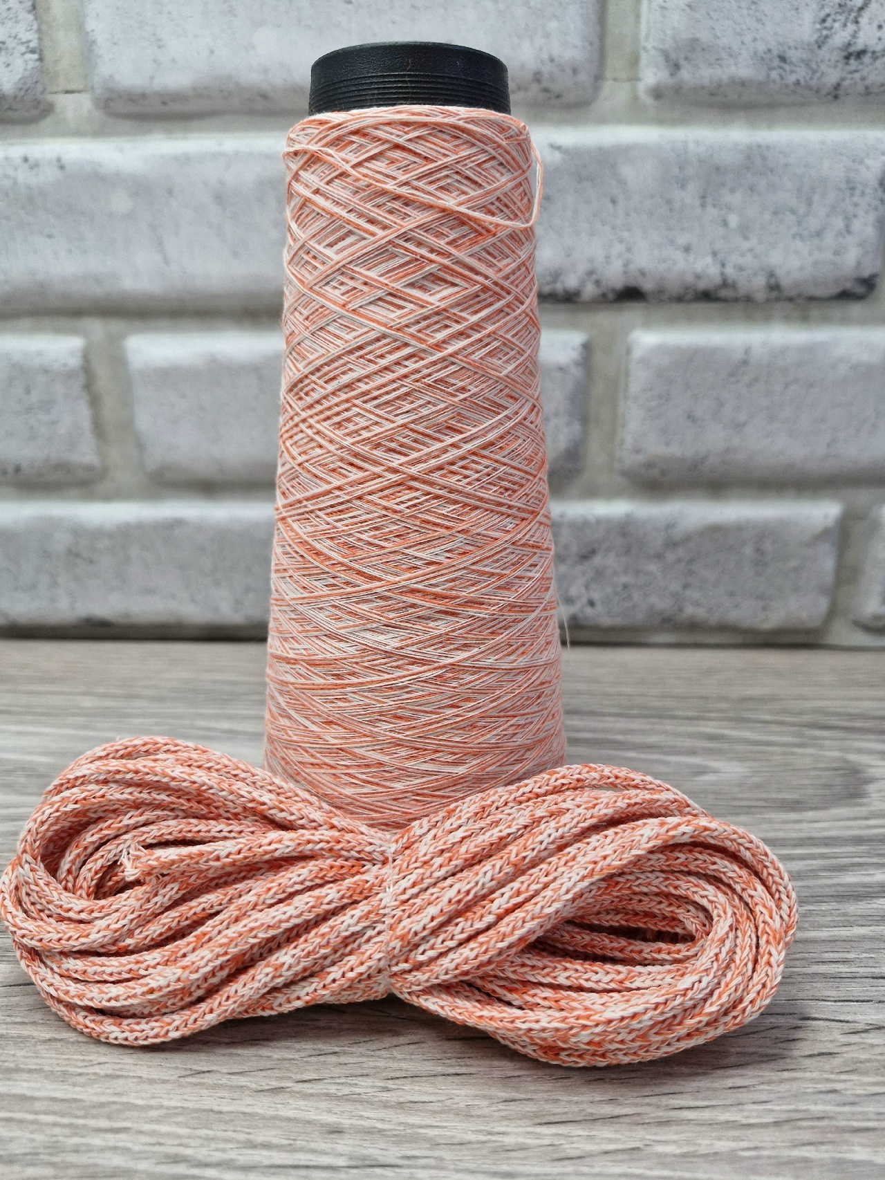 шнур хлопковый 4мм без сердечника молочный+морковь (2-1)