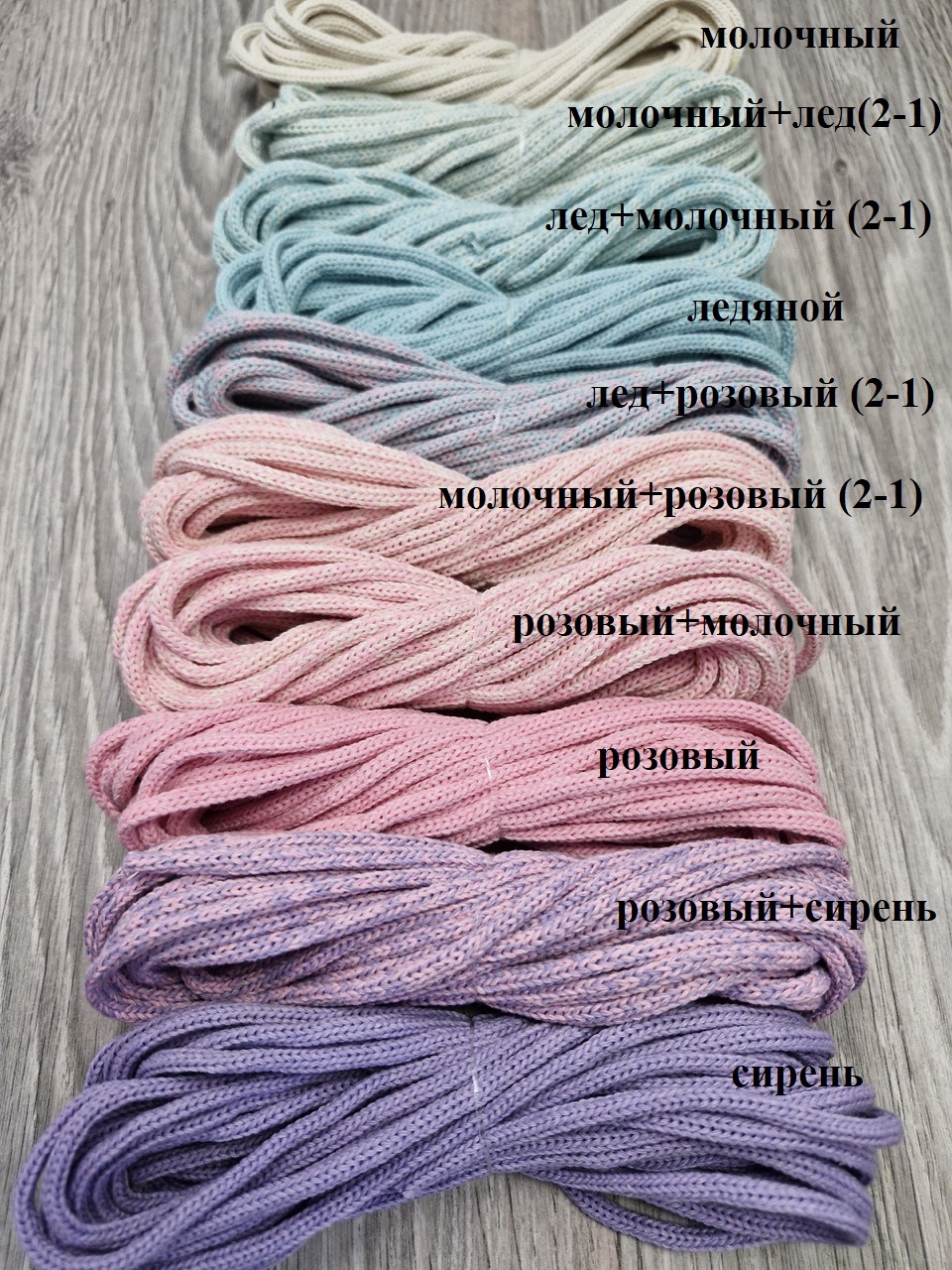 шнур хлопковый 4мм без сердечника розовый+сирень