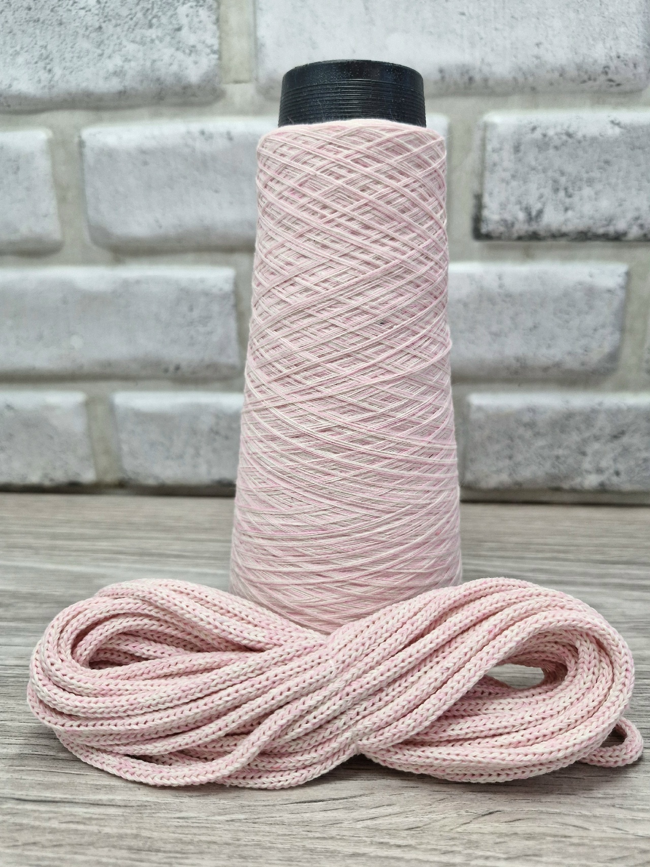 шнур хлопковый 4мм без сердечника ледяной+розовый (2-1)