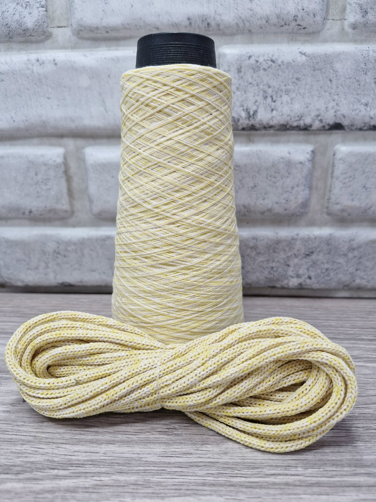шнур хлопковый 4мм без сердечника молочный+желтый (2-1)