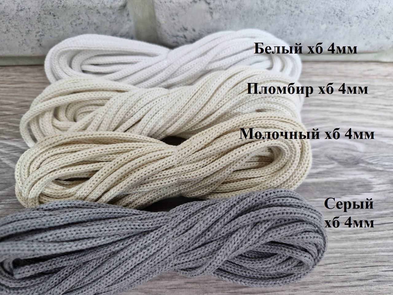 шнур хлопковый 4мм без сердечника серый+ледяной