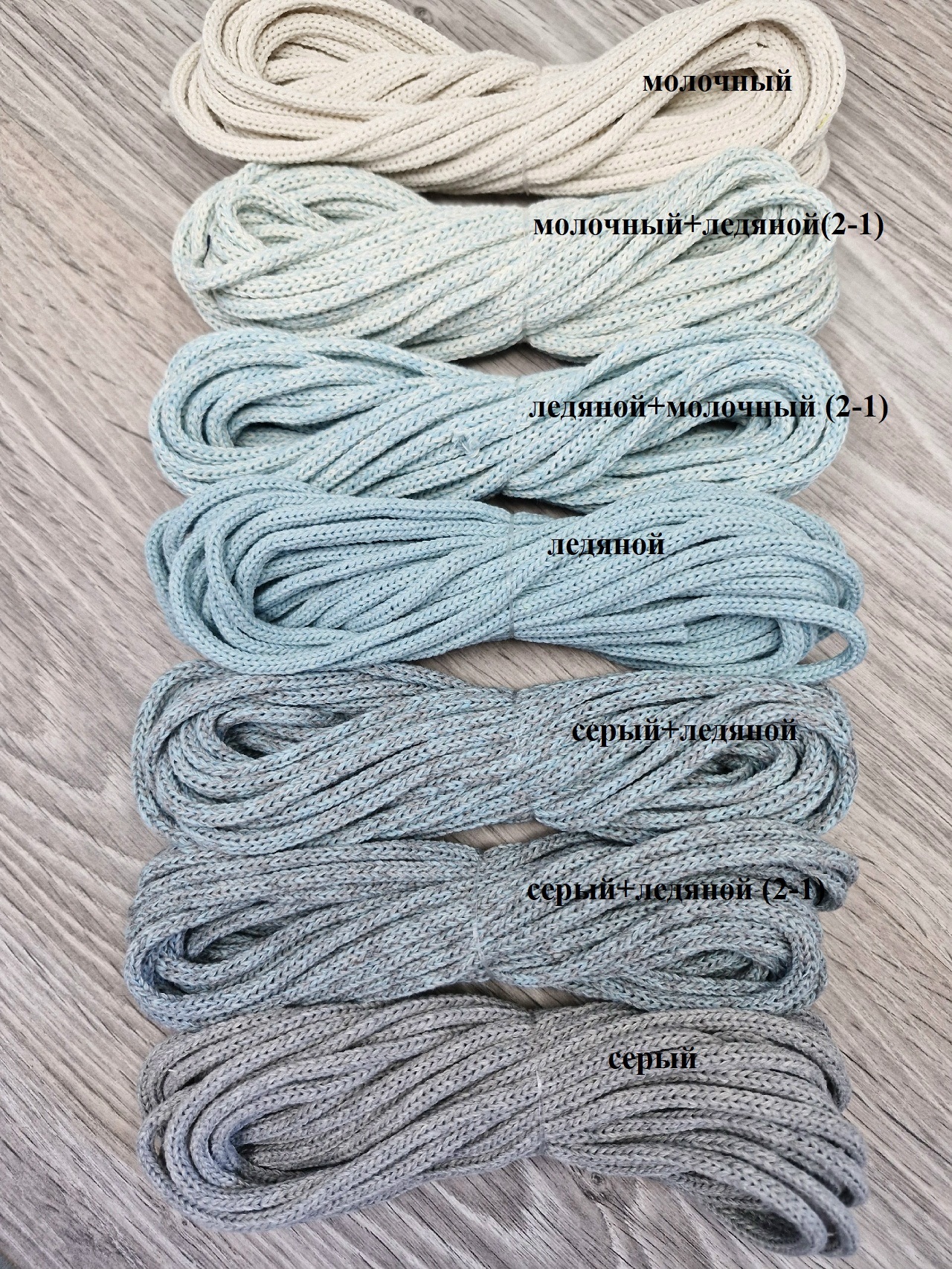 шнур хлопковый 4мм без сердечника серый+ледяной (2-1)