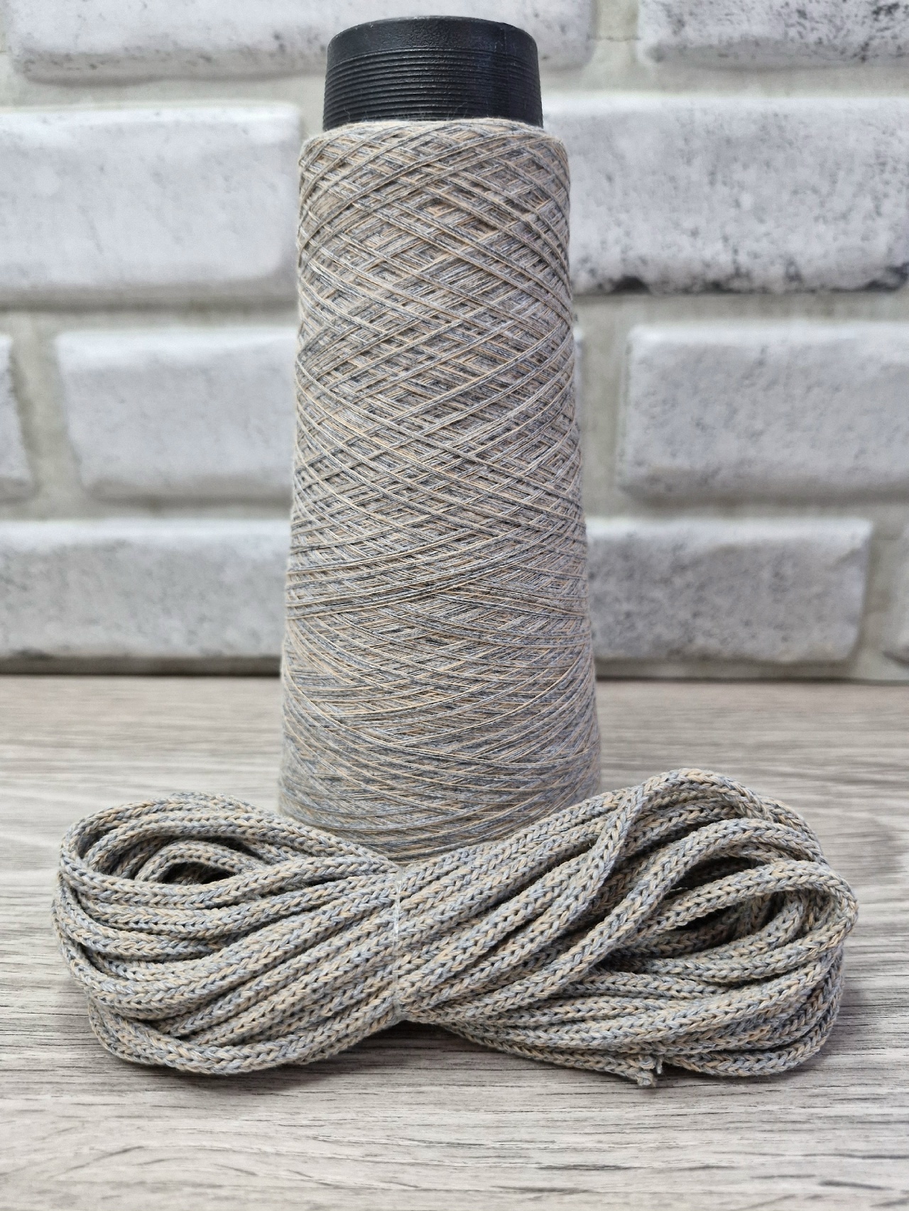 шнур хлопковый 4мм без сердечника серый+миндаль (2-1)