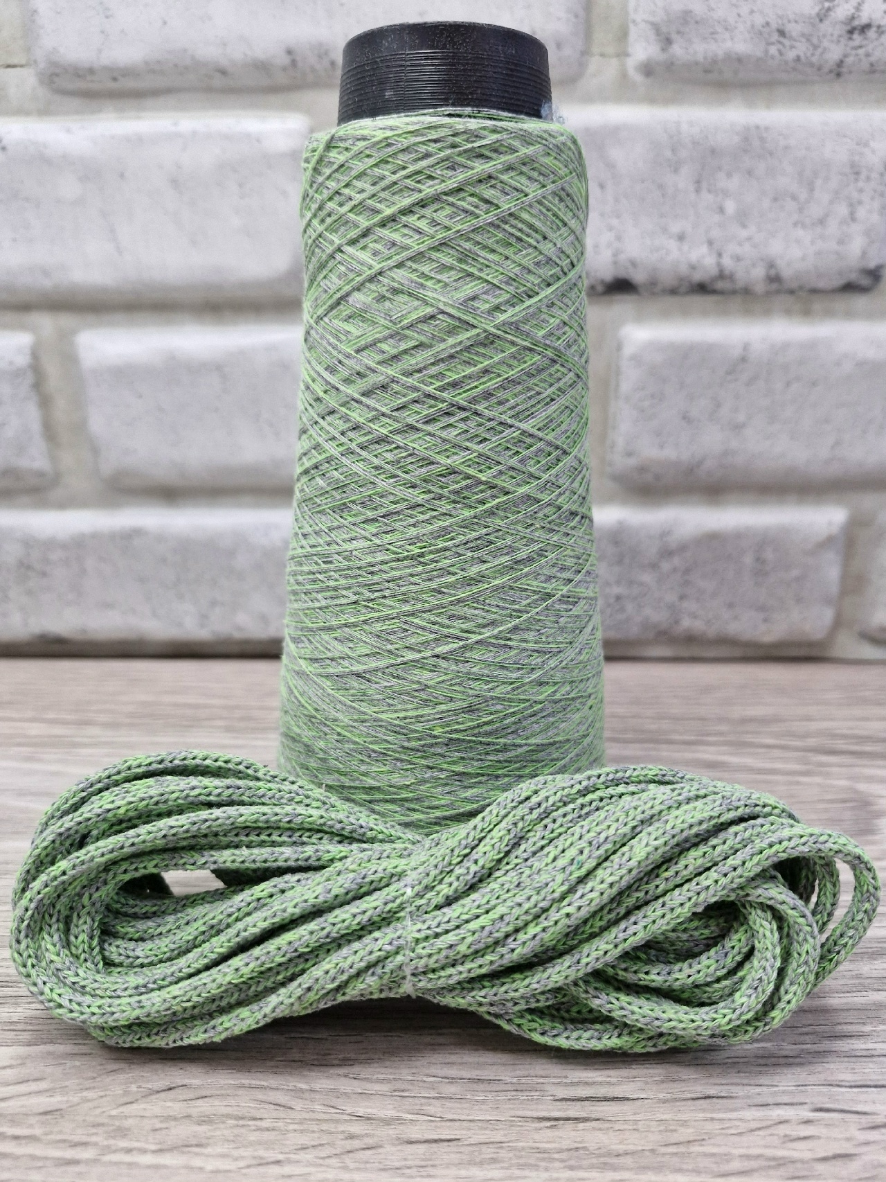 шнур хлопковый 4мм без сердечника серый+салат (2-1)
